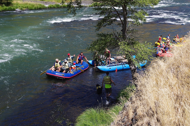 We had our annual family rafting trip on the Deschutes river. Emmett was still too little to go on the trip. We tried to fit him in a life jacket that was the right class, but they were still not right. So he stayed home with his Daddy. Brayden and Mitchel also stayed home due to soccer and other obligations. August and I were the only ones from our immediate family to make the trip. This year the trip was formatted differently though, instead of spending the whole week on the river we were going to head to the take out a day early and run Oak Springs the last day. So Brent and the other boys joined us in Maupin for the last day.